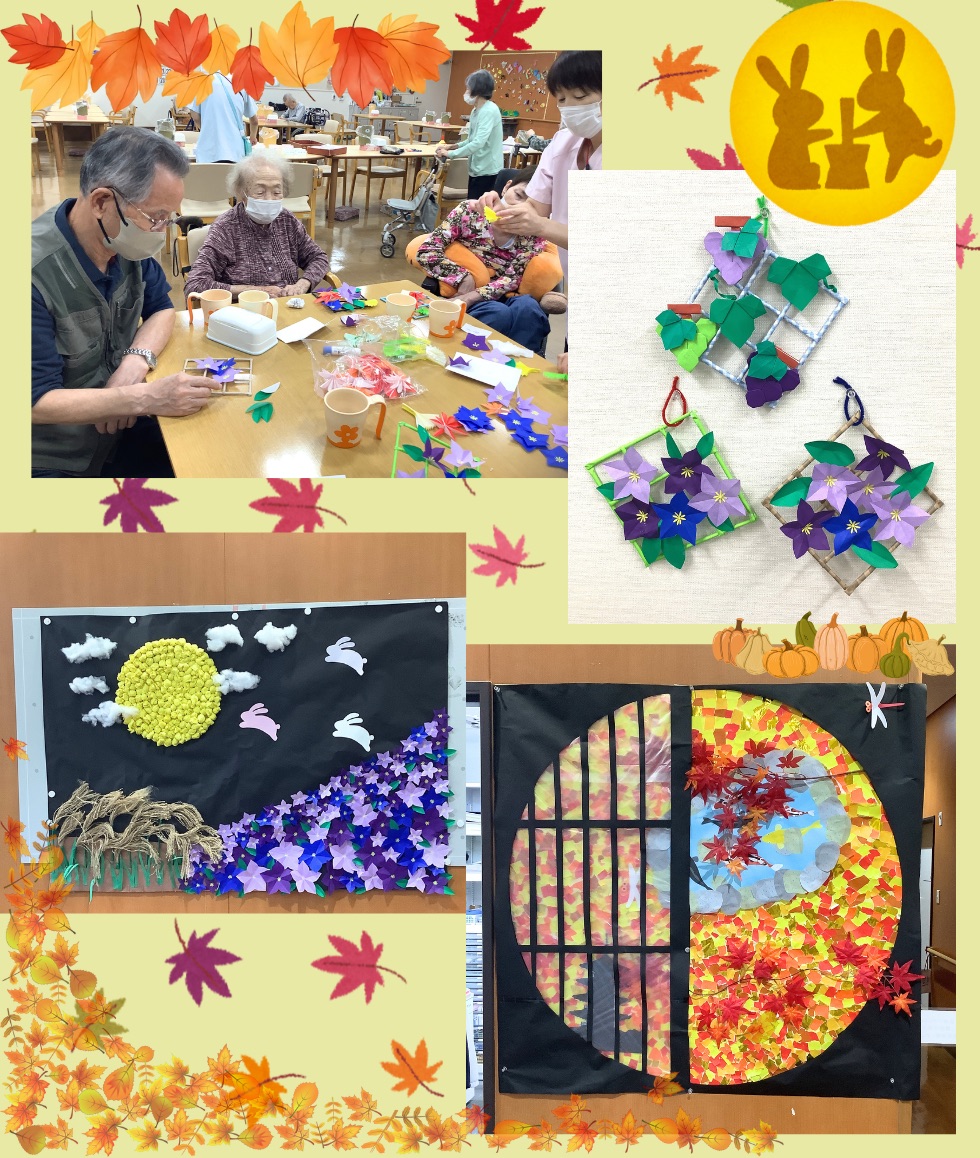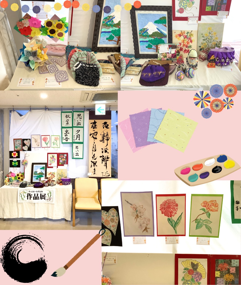 10月あっとほーむ通所の利用者様、入所の利用者様が作成した作品を「あっとほーむ作品展」として展示させていただきました(^^)